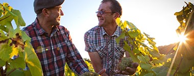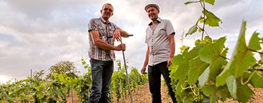 【ナント市から南東に15km(ナントしナントウ・・(´Д`)さむ~)、シャトー・テボー村に1858年に創業したミュスカデの名門ドメーヌで、1987年より、ジャン・ミッシェル(写真左、醸造担当)とローラン(写真右、栽培担当)のポワロン兄弟が運営しています。早1995年から厳格なリュット・レゾネ栽培に取り組み、2015年にはフランス農水省が規定する「HVE(Haute Valeur Environnementale=高い環境価値)」の最高段階であるレベル3の認証を取得しています。