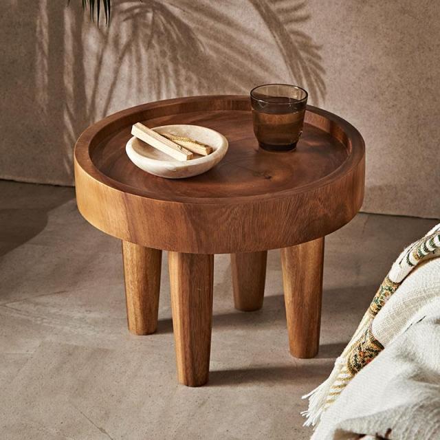 ナチュラルな素材を活かしたデザインは、ワックス仕上げで深みと重厚感を演出。高さ約30cmの低めのサイズで、床や畳での使用に最適なローテーブルです。重さ約7kgの安定感のある作りで、観葉植物や花瓶を飾るプランター台や、店舗用ディスプレイにもおすすめ。単品使いはもちろん、モンキーポッドの丸太から削り出されたスツールにもなるサイドテーブルや、天板にフチがないサイドテーブルと複数使いしたワンランク上のコーディネートもお楽しみいただけます。シンプルながらオブジェのような存在感のあるテーブルは、空間に自然の美しさと彩りをプラスします。