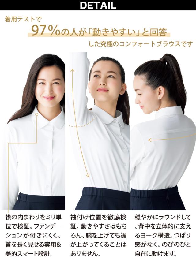 FOLK NUOVO FB75577 長袖ブラウス ホームクリーニング 動きやすい設計 おうち洗濯OK 事務系 医療系 接客系 オフィス制服事務服 5号〜17号