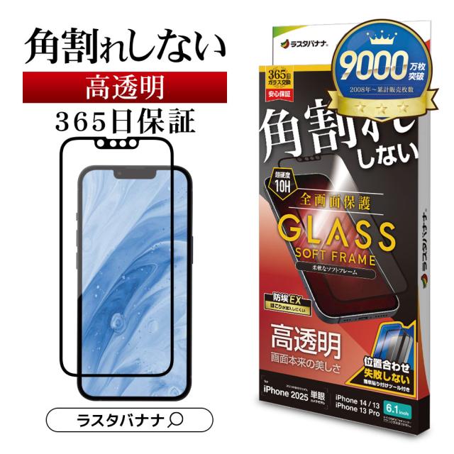iPhone 16e iPhone14 13 Pro 13 ガラスフィルム 全面保護 高光沢 高透明 角割れしない ホコリ防止 0.25mm 10H 貼り付けガイド枠付き アイフォン 保護フィルム SG4704IP5E ラスタバナナ