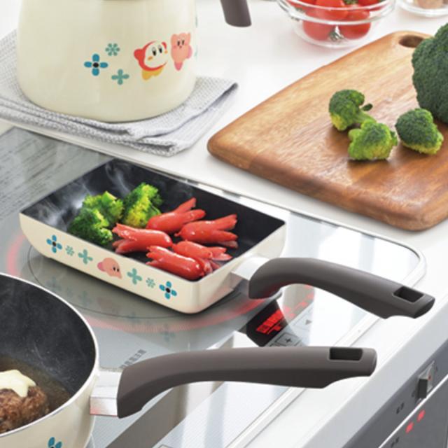 星のカービィのキッチンウェアシリーズには、卵焼き器、フライパン20cm、フライパン24cm、片手鍋、マルチクックパンがございます。シリーズで揃えれば、キッチンが一気にハッピーな雰囲気になります。