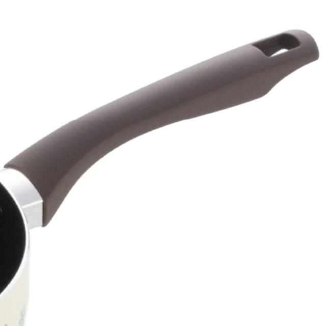 | 材質 | 本体:アルミニウム合金(内面ふっ素樹脂加工) 底部:ステンレス鋼、底の厚さ:2.4mm 取っ手:フェノール樹脂(シリコン樹脂塗装) |