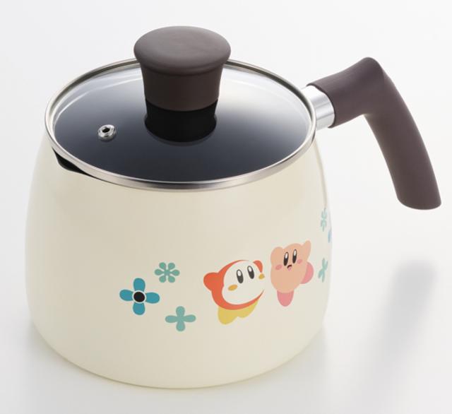 毎日の料理がもっと楽しくなる、星のカービィのキッチンウェアシリーズ。 優しい色合いの本体に、カービィやワドルディ、お花のモチーフがあしらわれています。穏やかな色調で統一され、温かみを感じさせるデザインのお鍋です。
