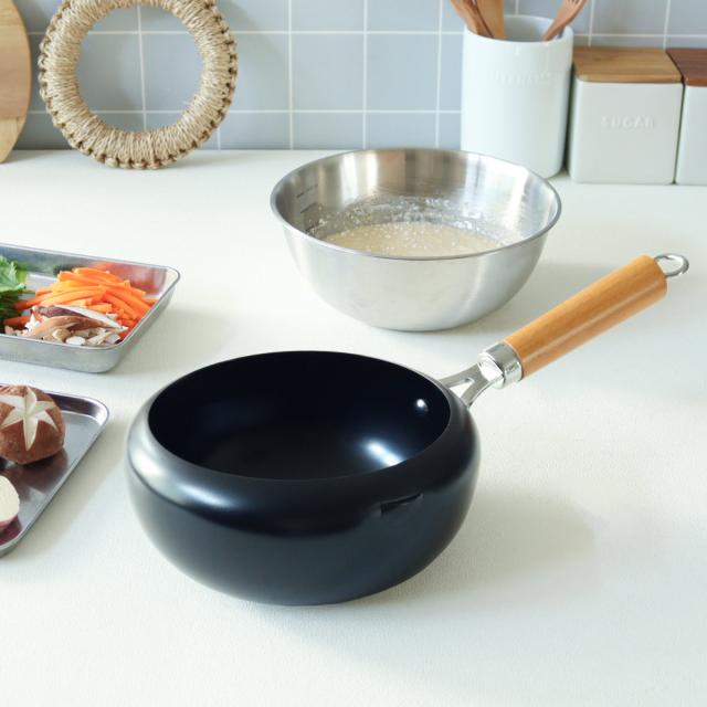 少量の揚げ物や、お弁当のおかず作りなどにも最適なサイズです。便利な片手鍋タイプなので普段使いしやすいです。ガスはもちろん、200VのIHやあらゆる熱源に対応しています。