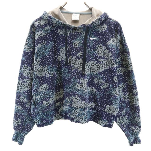 ナイキ 総柄 長袖 スウェットパーカー S ネイビー NIKE レディース