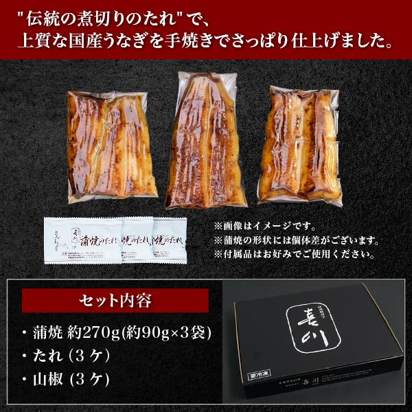 〈神田明神下喜川〉国産 手焼き うなぎ 蒲焼 270g(90g×3枚) 【送料無料】江戸前 銘店 通販 有名 簡単 鰻 高級 ウナギ 父の日 母の日 プレゼント ギフト 72b45