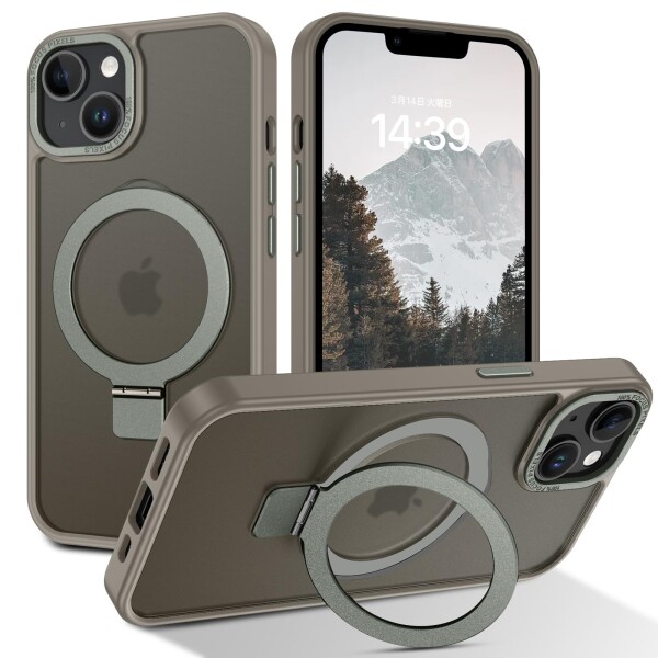 DUEDUE iPhone 13 Mini ケース MagSafe対応 アイフォン13mini ケース マグネット搭載 スタンド機能 120°開閉可能 グレー 指紋防止 耐衝撃 一体型 薄型 TPUケース 車載ホルダー対応 ワイヤレス充電 全
