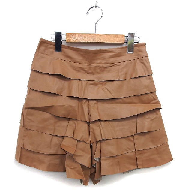 【中古】ルーニィ LOUNIE ティアード キュロット フェイクレザー ショートパンツ サイドジップ 36 キャメル /NT35