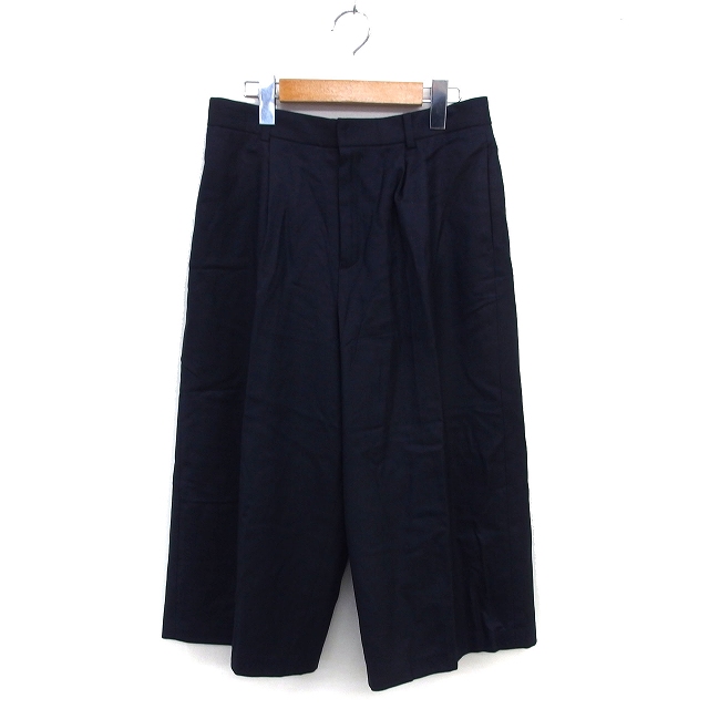 【中古】ノーリーズ Nolley's ガウチョパンツ ワイド クロップド センタープレス ウール タック ジップフライ 40 紺