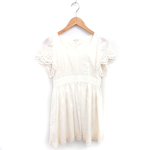 【中古】シンシアローリー CYNTHIA ROWLEY ワンピース フレア 刺? 膝丈 スカラップ プルオーバー 半袖 2 アイボリー