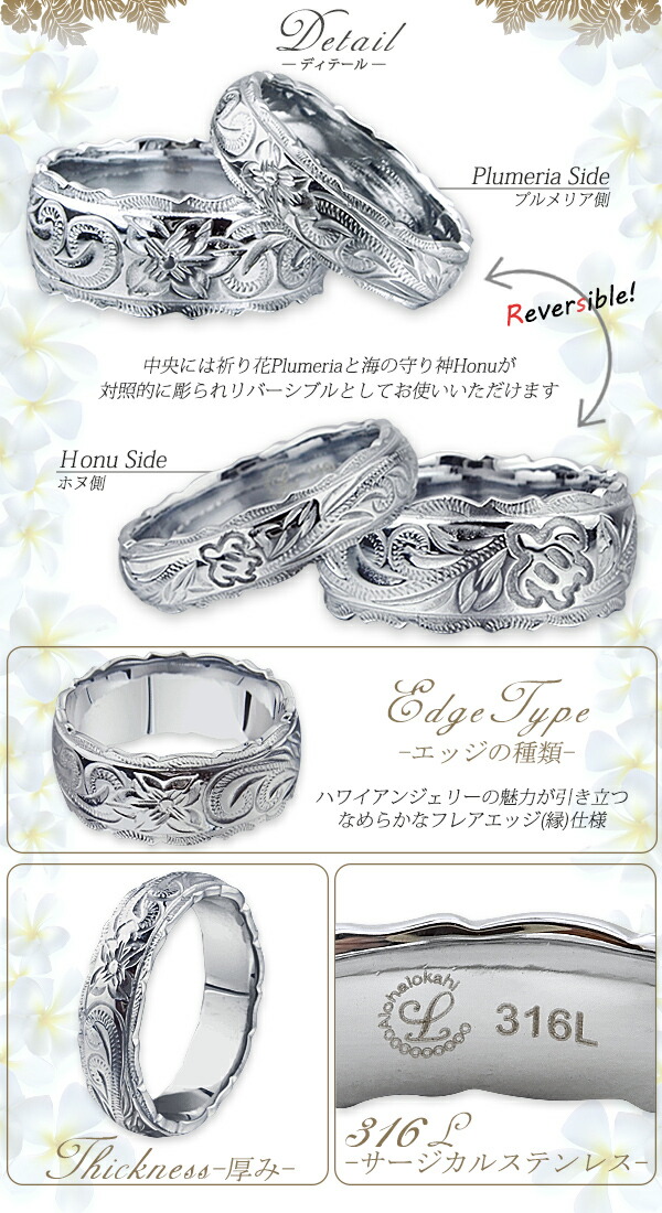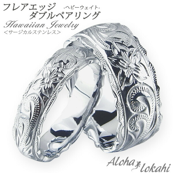 | 商品名 | ハワイアンジュエリー ハワイアン ペアリング 刻印無料 指輪 リング ステンレス サージカルステンレス ダブル カットアウト ホヌ スクロール プルメリア |