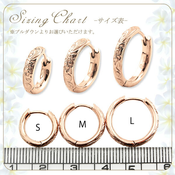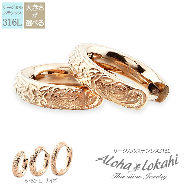 送料無料 ハワイアンジュエリー ピアス 3つのサイズから選べる ハワイアン フープピアス ローズゴールド