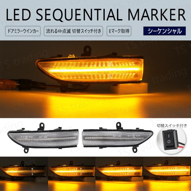 レガシィB4 BM9 点滅 流れる シーケンシャル スイッチ切替 LED ウインカー ミラー ドアミラー クリアレンズ