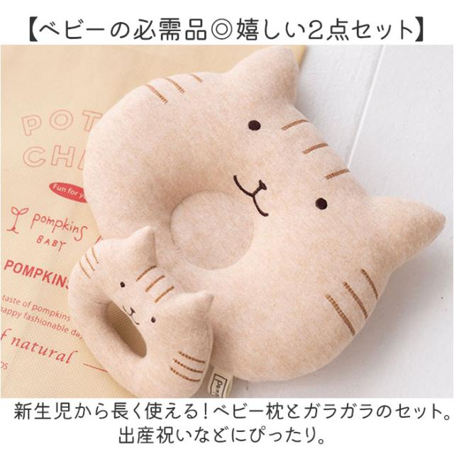 ポプキンズ 出産祝い 通販 日本製 ベビー ギフトセット 2点セット 女の子 男の子 ベビー枕 ガラガラ 枕 まくら マクラ ベビーギフト 乳児用 ベビー用品 オーガニックコットン ベビーグッズ おしゃれ かわいい ブランド POMPKINS BABY