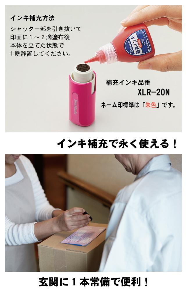 インクはシヤチハタ純正品XLR-20Nをご使用ください。(他メーカーの物を補充すると故障の原因になります。)