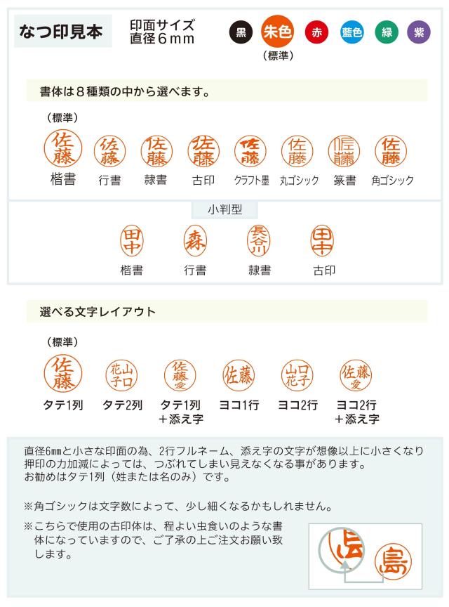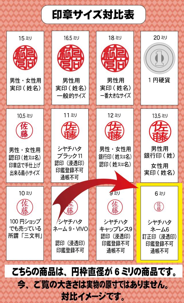 印面円直径6ミリ(訂正印として、又スタンプカードにも。狭い枠に捺せる小さな印影)