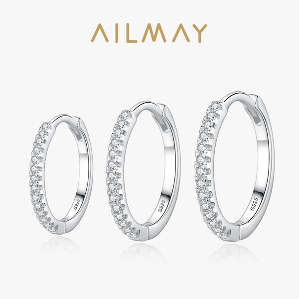 Ailmay 100% 925スターリングシルバークリアジルコンシンプルなファッション女性女の子抗アレルギーファインジュエリーギフト