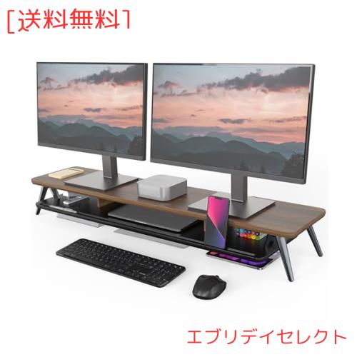 Fenge モニター台 卓上 机上台パソコン台 机上ラック 108cm横幅 2段 木製天板 アルミニウム製脚 デスクトップ用 机上 モニタースタンド