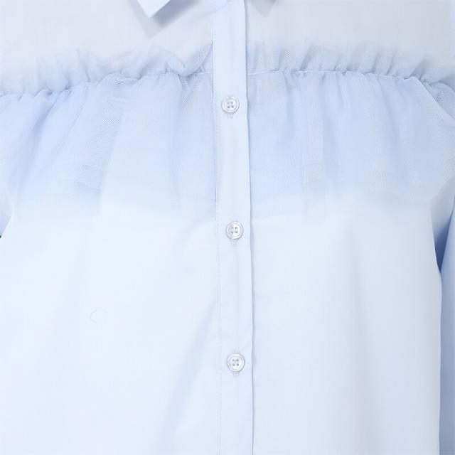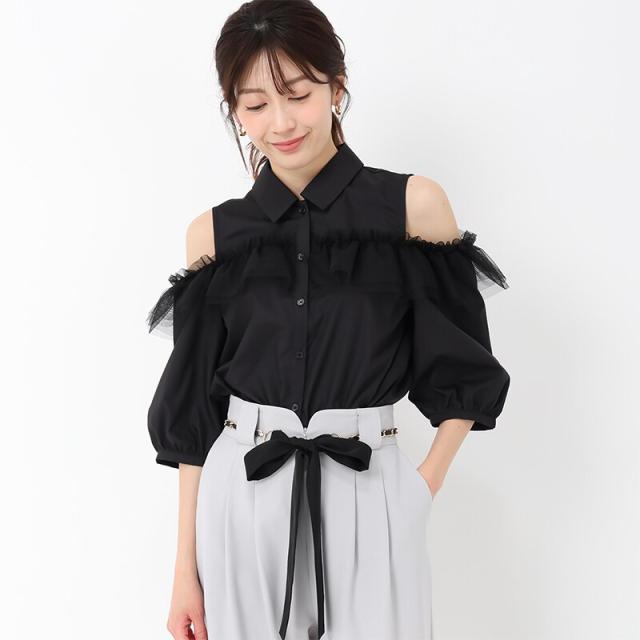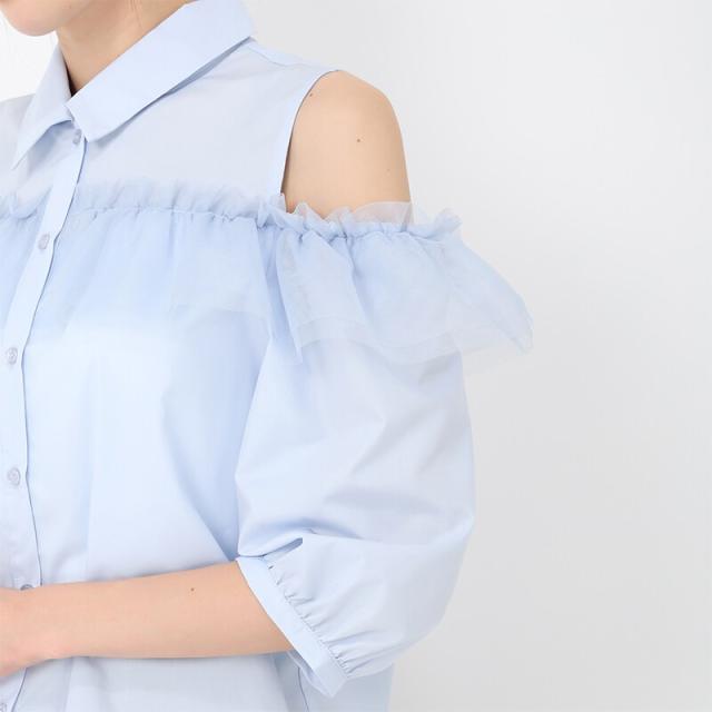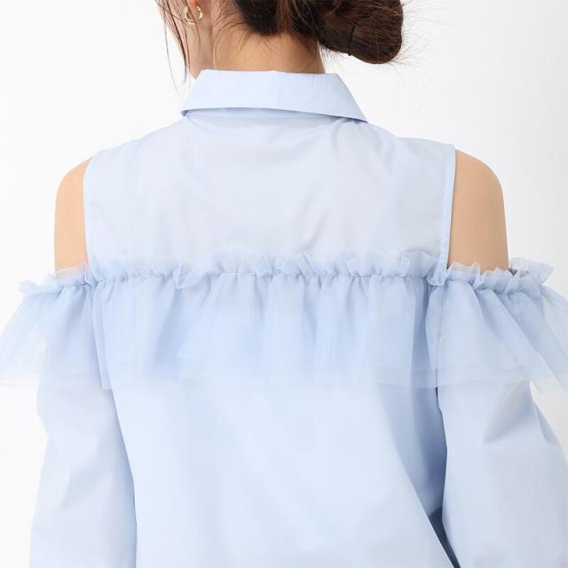 25春夏新作 オープンショルダーチュールフリルシャツ