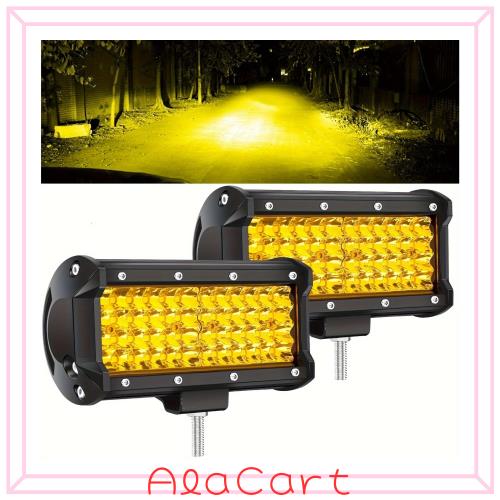 ?【超高輝度明るさ】4列&48連超高輝度純正CREE製チップ搭載、驚くほど21600ルーメン達成!60°狭角発光で照射距離は他のよりもっと遠くなって、真っ黒な道でも、安全運転を確保できます!黄色い光は見やすいので、他の車や歩行者から認識されやすくなります。白い光が眩しく感じる時もおすすめです。