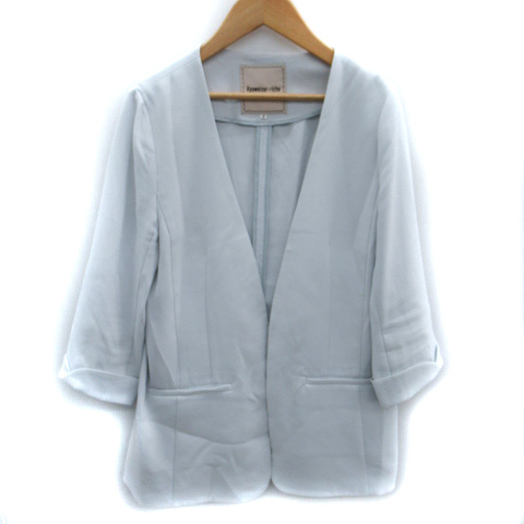 【中古】アプワイザーリッシェ Apuweiser-riche ノーカラージャケット ミドル丈 前開き 七分袖 2 アイスブルー