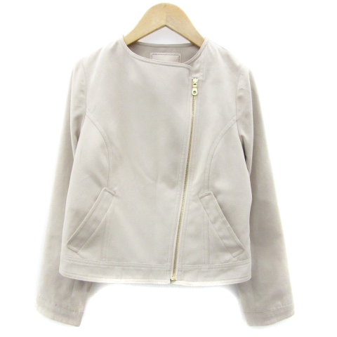 【中古】アプワイザーリッシェ ライダースジャケット ミドル丈 ジップアップ スエード調 1 グレージュ レディース