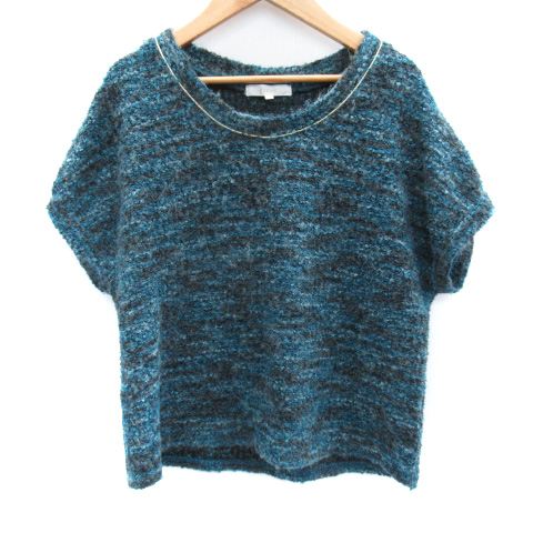 【中古】グローブ grove ニット カットソー 半袖 ラウンドネック ブークレ ウール混 L ブルーグリーン レディース