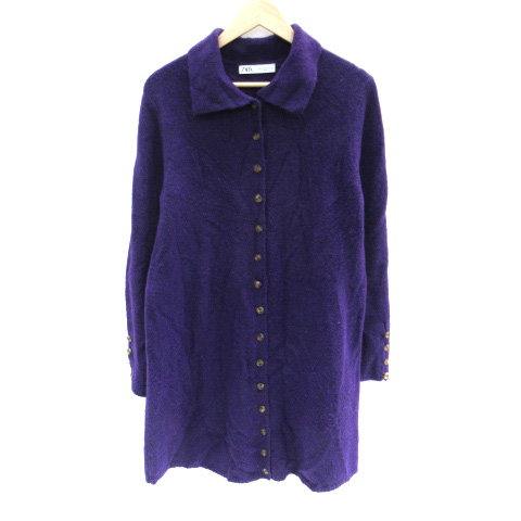 【中古】ザラ ZARA ニットカーディガン ロング丈 XL 大きいサイズ 紫 パープル /SM46 レディース