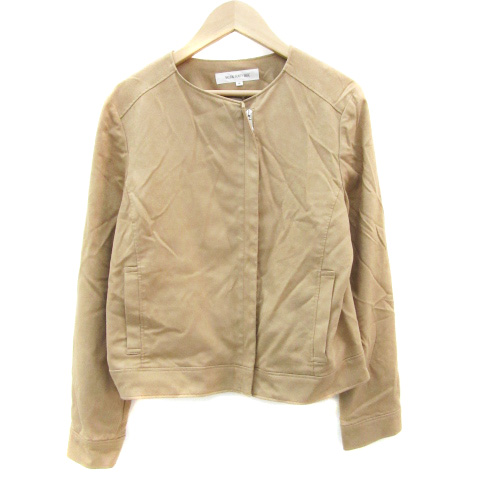 【中古】ナチュラルビューティーベーシック ノーカラージャケット ミドル丈 ジップアップ 総裏地 M 茶 レディース