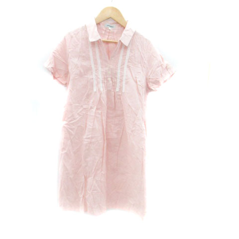 【中古】シューラルー SHOO・LA・RUE ワンピース スキッパーカラー 半袖 ひざ丈 レース M ピンク