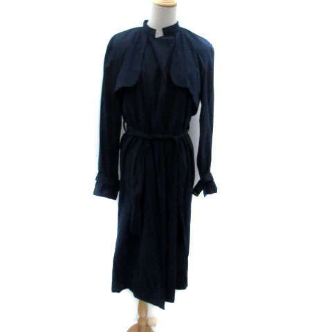 【中古】ジェイダ GYDA トレンチコート スプリングコート ロング丈 スエード調 リボンベルト付き F 紺 ネイビー