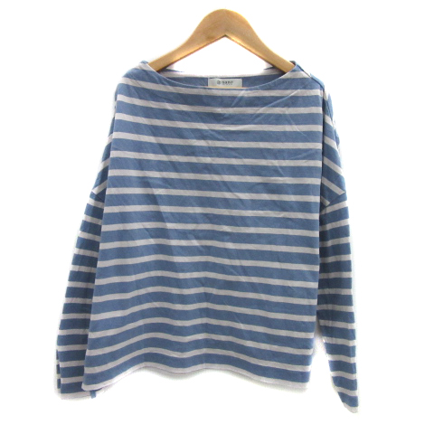 【中古】ナノユニバース Tシャツ カットソー 長袖 ボーダー柄 オーバーサイズ F 水色 ライトグレー レディース