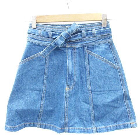 【中古】未使用品 ムルーア MURUA デニムスカート 台形スカート ミニ丈 1 S ブルー 青 /YM10 レディース