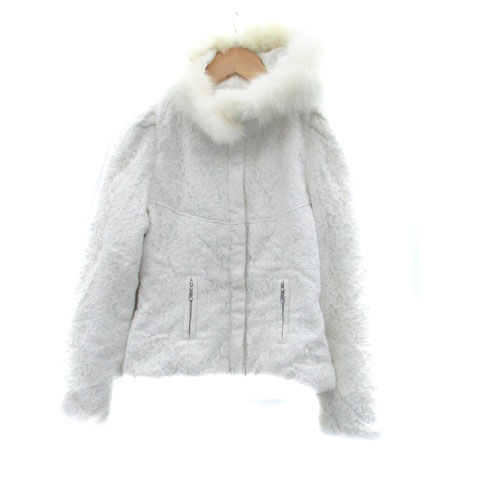 【中古】ルゥデルゥ ブルゾンジャケット ショート丈 フード付き 総レース フォックスファー 36 S オフホワイト