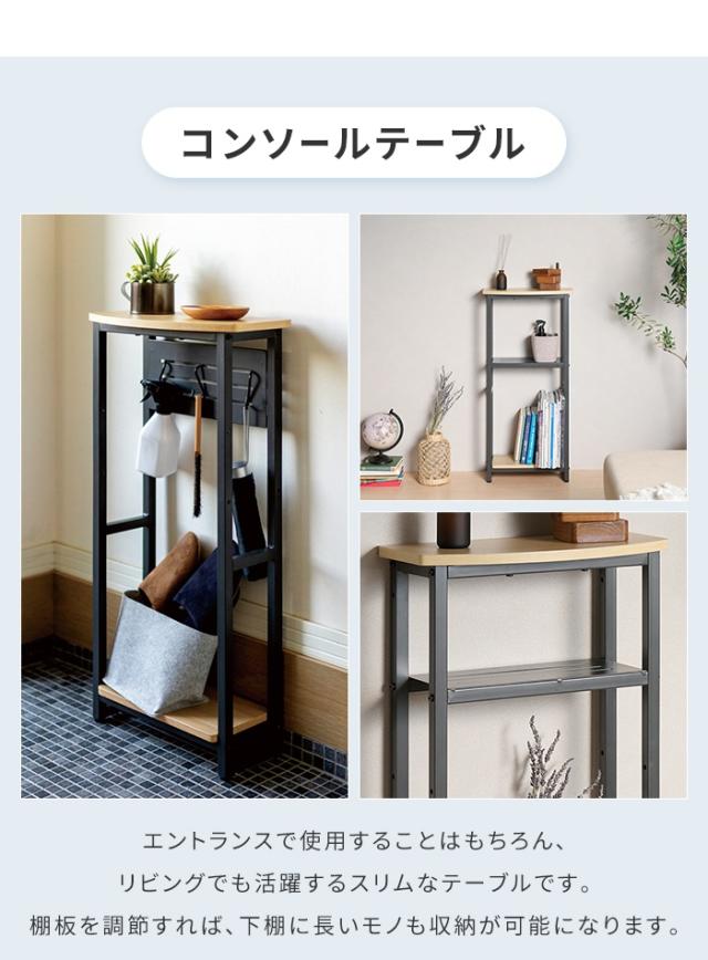 【値下げ】コンソールテーブル 幅40 高さ85 飾り台 スリム コンパクト S字フック付き サイドテーブル ディスプレイ シンプル 玄関 リビング 玄関ラック 置き場 北欧 スチールフレーム 木目 北欧 ナチュラル おしゃれ 新生活 一人暮らし