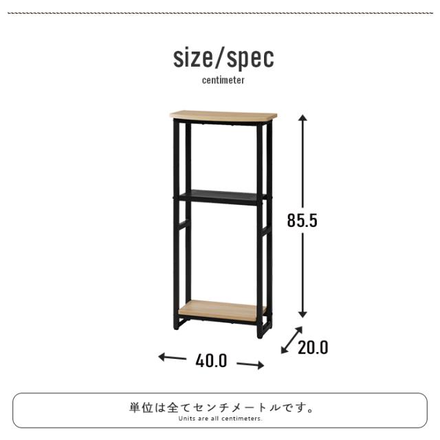 | [本体]幅40×奥行20×高さ85cm [棚板(鉄)]幅32×奥行15×高さ2cm [棚板]幅32×奥行16cm |