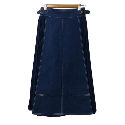 【中古】グローブ スカート 台形 ミモレ 膝下 デニム ドッキング 切替 プリーツ M 紺 青 ネイビー ブルー レディース