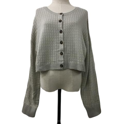 【中古】クラシカルエルフ カーディガン ニット セーター ラウンドネック ジャガード 2WAY 長袖 L グレー 白