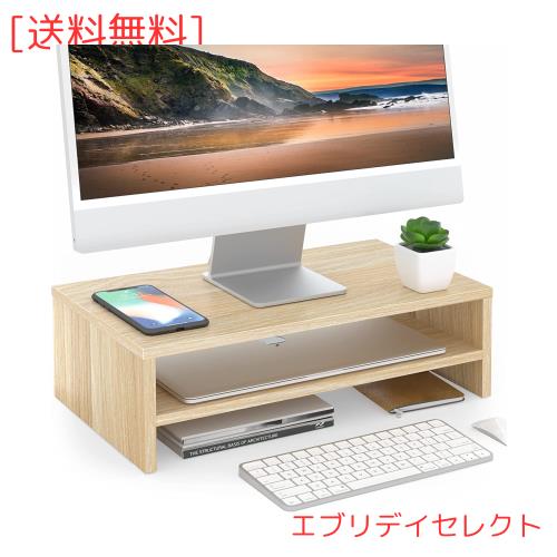 Fitueyes モニター台 パソコン台 モニタースタンド 机上台42.5cm横幅 木製天板 二段式PC台卓上 パソコンスタンド デスクトップ用 机上 机