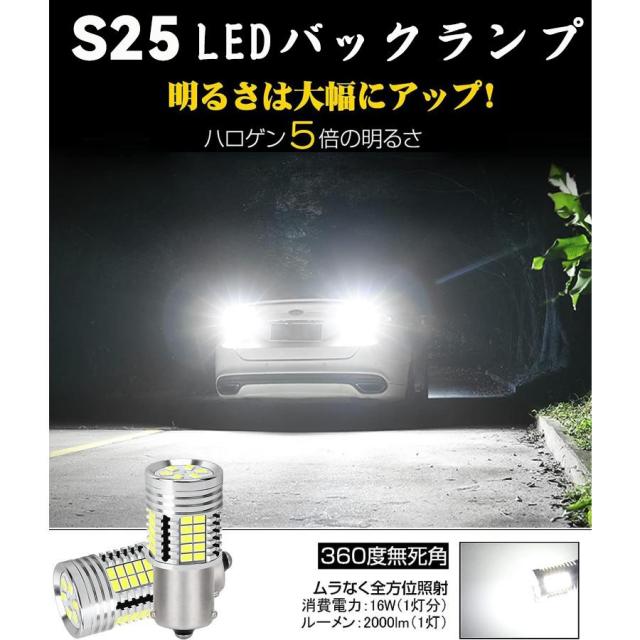 S25 LEDバックランプ S25シングル 後退灯 LEDバルブ ピン角180度 2個セット 爆光 4000LM ホワイト 6500K 12V車用 車検対応 無極性