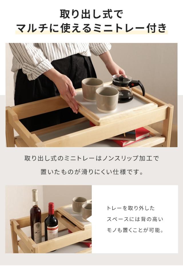 木製 ワゴン 3段 キャスター付き ミニトレー付 幅60 奥行32 配膳台 可動棚 リバーシブル棚板 ラック 収納 キャスター 移動 可動 トレー おぼん リビング キッチン ランドリー ダイニング 収納家具 可愛い おしゃれ 北欧 新生活 一人暮らし