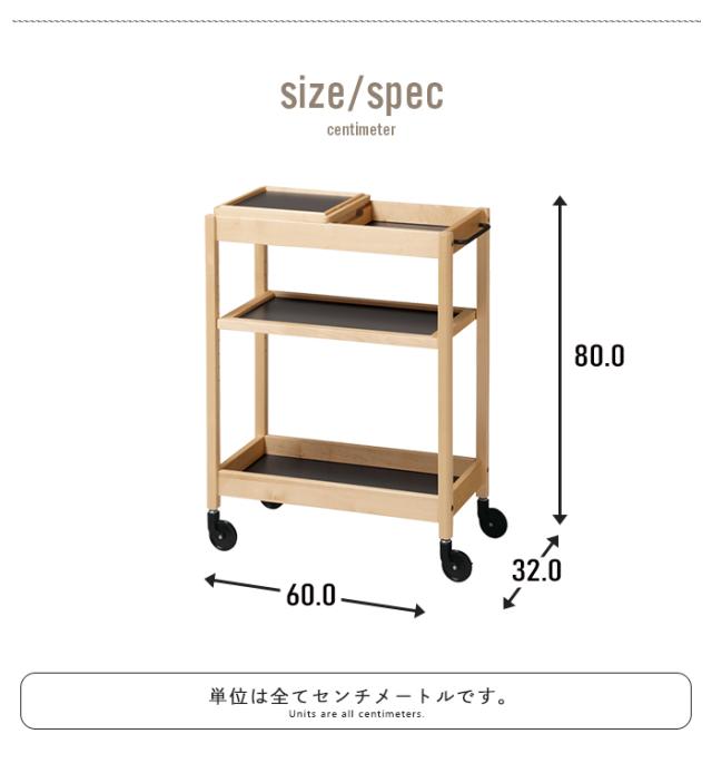 キーワード: ワゴン 3段 木製 ミニトレー キャスター付き 幅60 奥行32 配膳台 可動棚 リバーシブル棚板 収納家具 可愛い おしゃれ 木製ワゴン 収納ワゴン キッチンワゴン 3段ワゴン スリムワゴン 収納棚 収納ラック 飾り台 移動 高さ調整 北欧風 リビング ダイニング キッチン ワンルーム オフィス