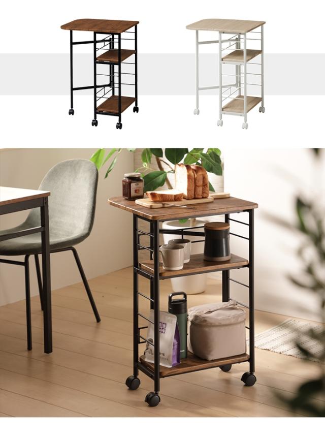 キッチンワゴン バタフライ式 キッチンラック キャスター付き 伸縮 天板拡張 バタフライワゴン 作業スペース シンプル 収納棚