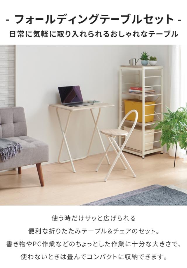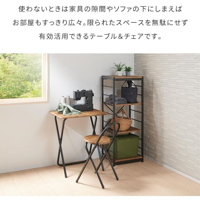 折りたたみテーブル&チェアセット フォールディングテーブル チェア セット品 簡易デスク コンパクト 省スペース 木目 スチール