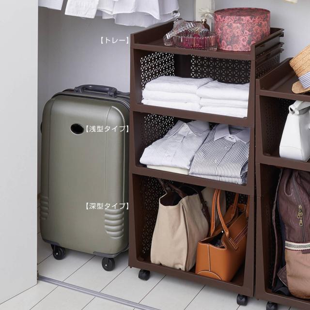 同シリーズの浅型タイプやトレーと組み合わせることで、さまざまな収納ニーズに対応することができます。収納物に柔軟に対応できる、使い勝手いの良いシリーズです。