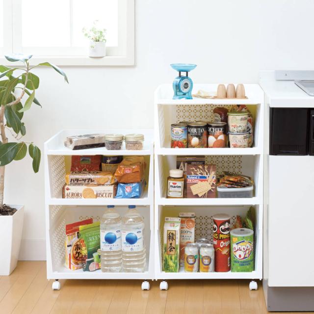積み重ねると省スペースにたっぷり収納できるラックになります。クローゼットや洗面所、キッチンなどでデッドスペースになりがちな縦の空間を有効活用できます。
