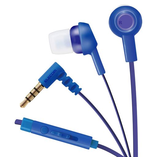 エレコム ステレオイヤホン マイク付 からまりを防ぐフラットケーブル 1.2M(Y型) IPHONE/スマホ対応 3.5Φ4極 ブルー EHP-CS3520MBU