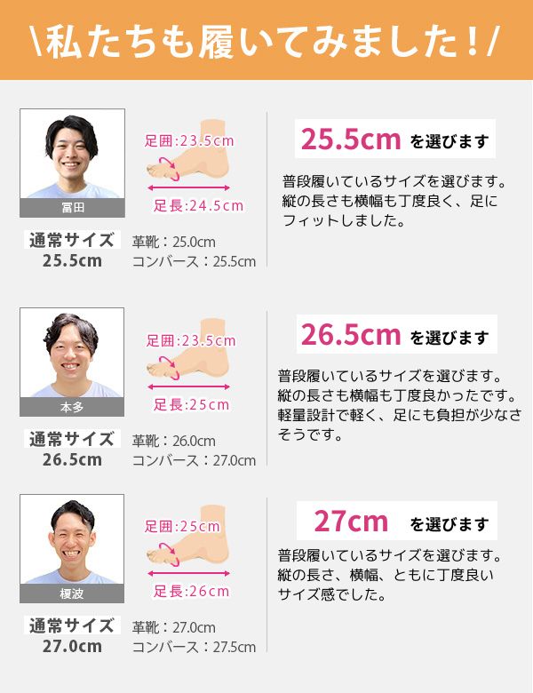 取り扱いサイズ:25cm 25.5cm 26cm 26.5cm 27cm