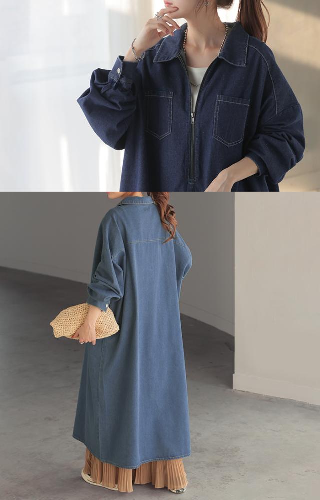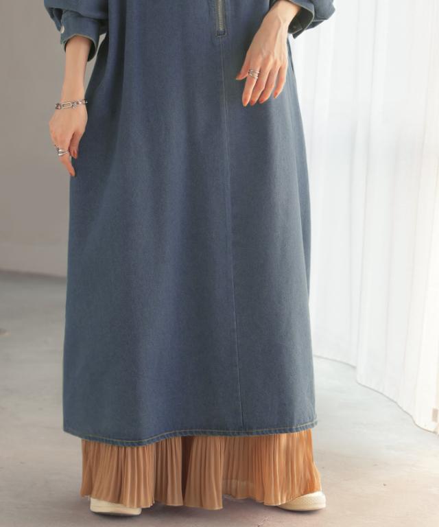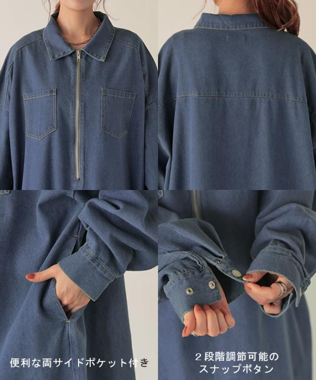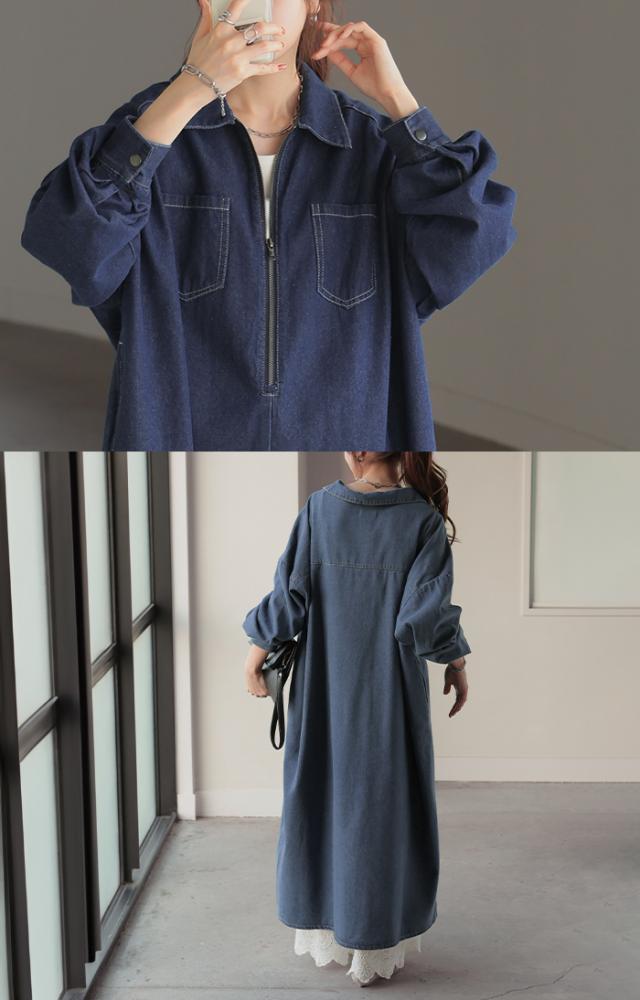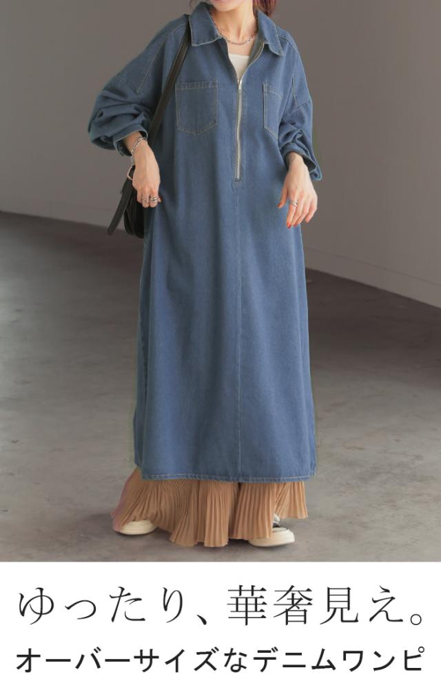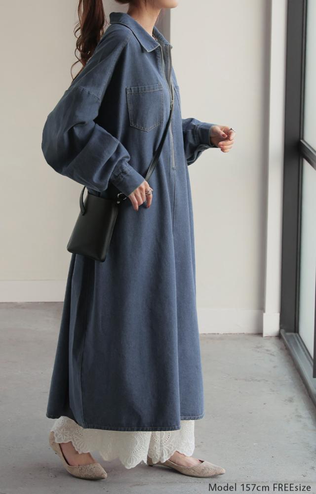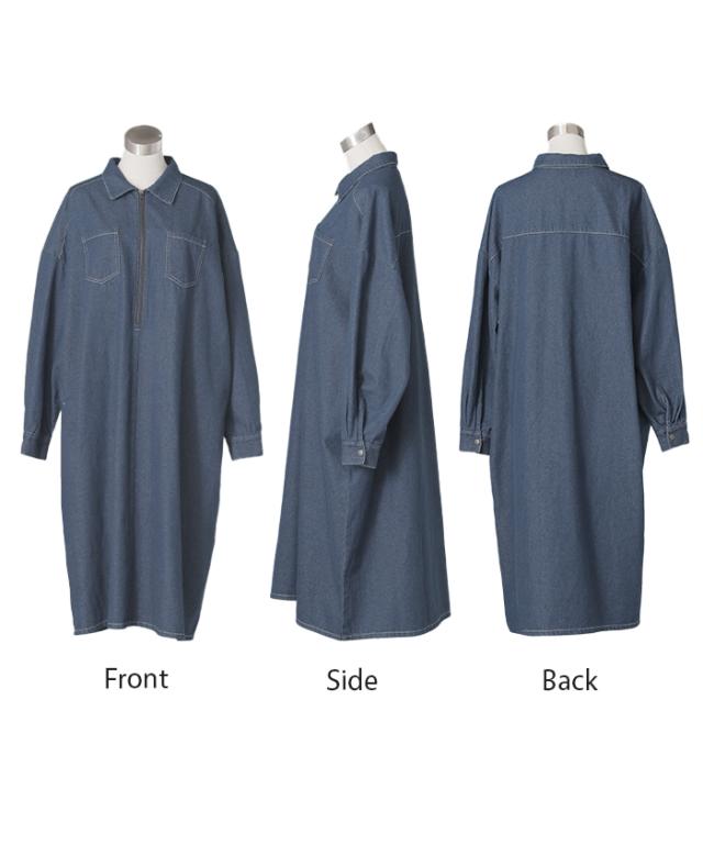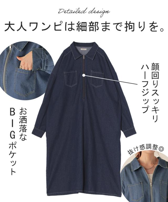 一枚でスタイリングが完成するハーフジップのデニムワンピースです。