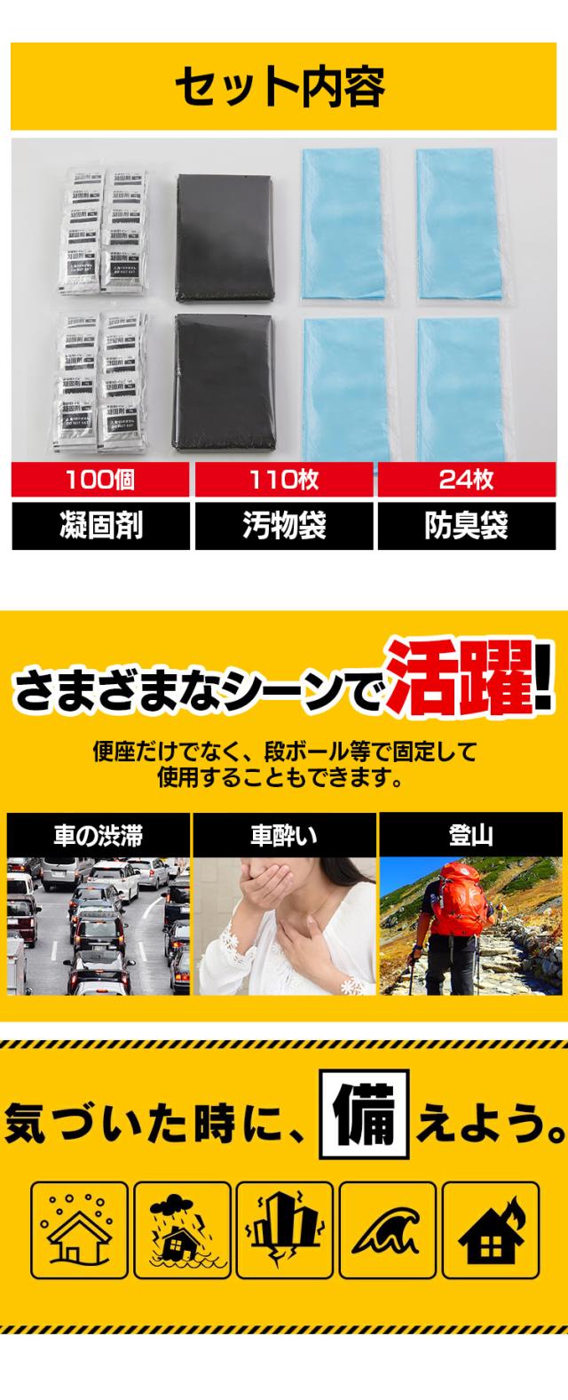 凝固剤×100、汚物袋×110、防臭袋×24(100回分)